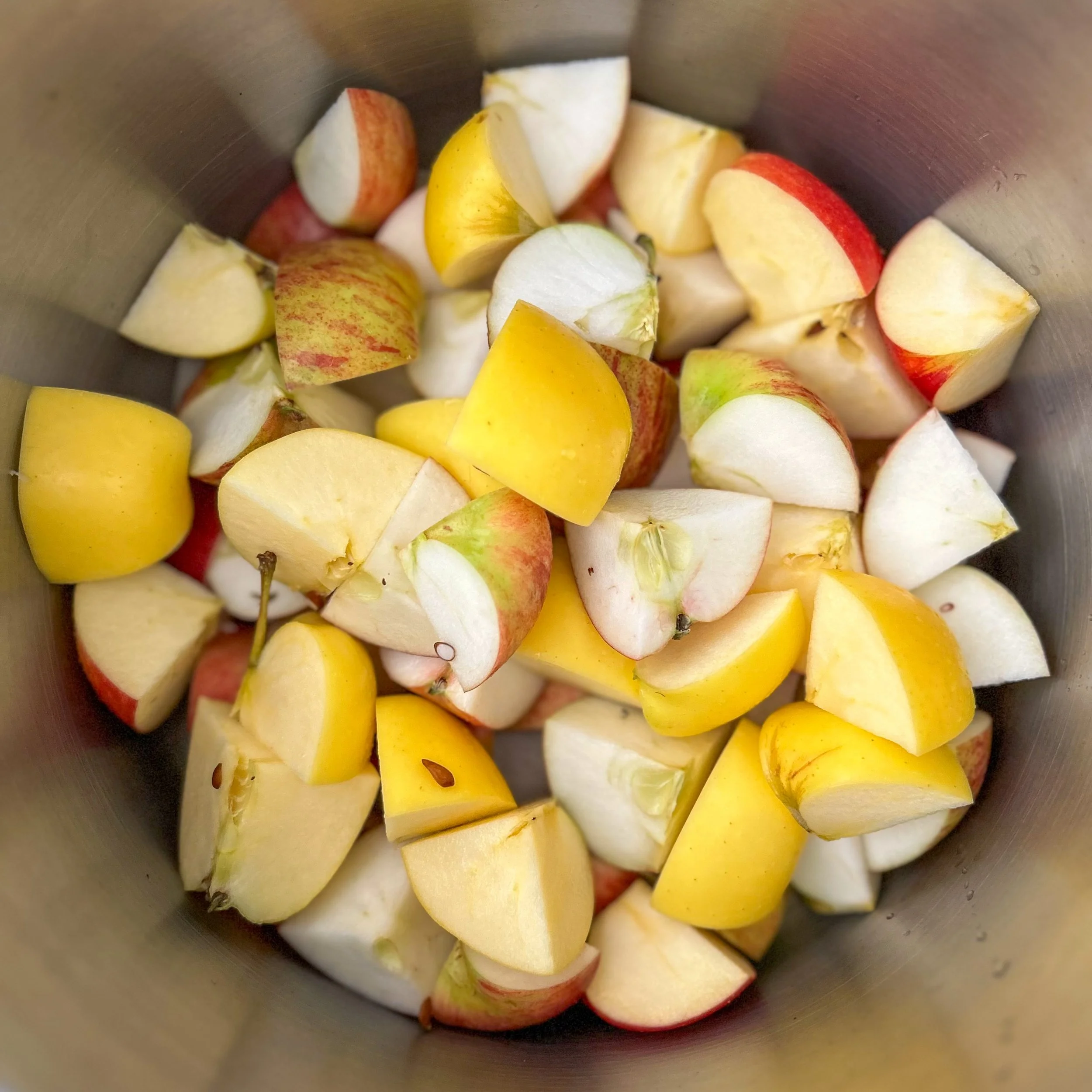 Return the apple puree to the saucepan with the lemon juice and return to a simmer, stirring to prevent sticking.