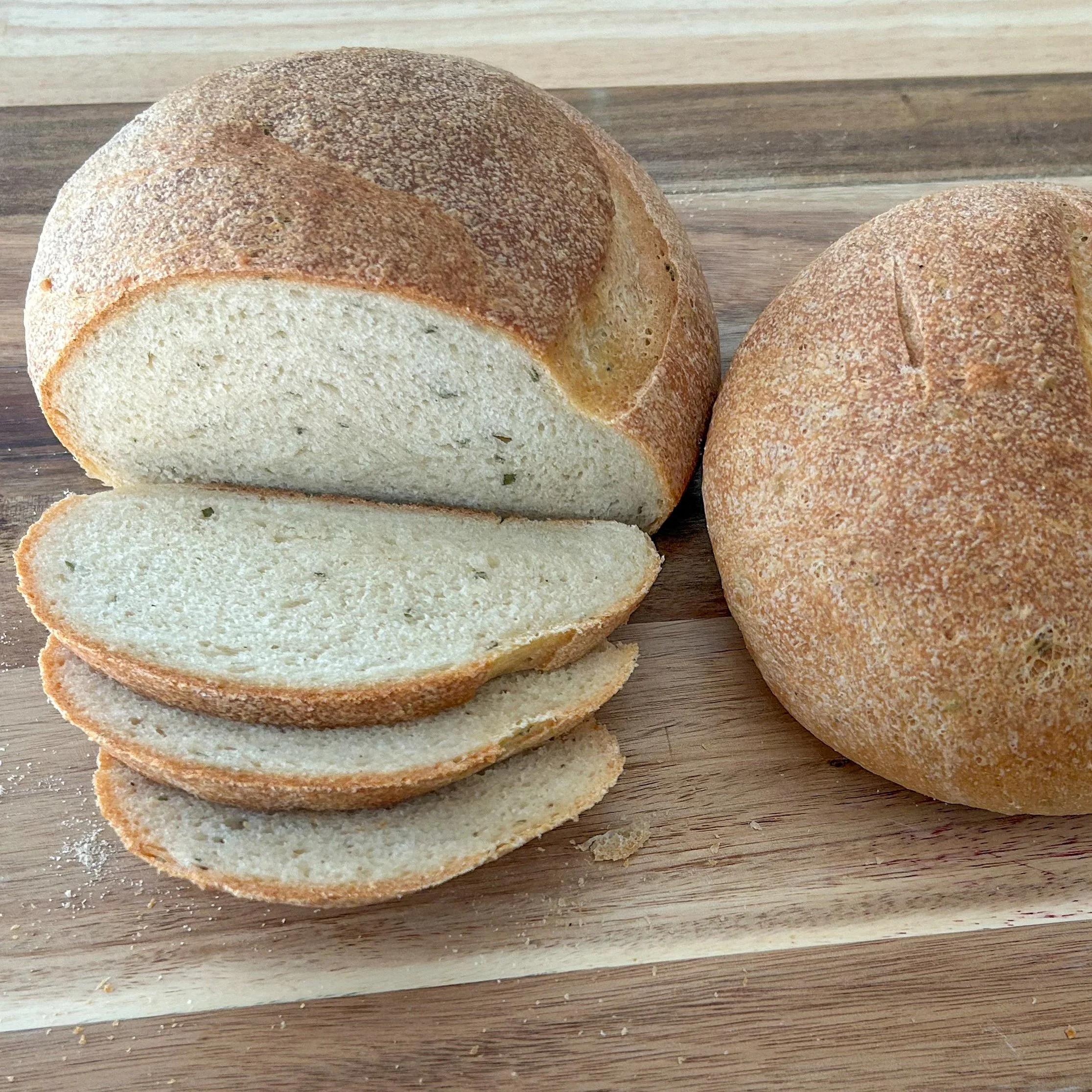 Remove the dough and divide into 2 equal pieces (these can also be made into small dinner rolls by dividing into 18 pieces and lessening the baking time.) Shape each piece into a boule. Line a baking sheet with parchment paper and sprinkle with semolina or cornmeal. Rest the dough on the parchment paper and cover loosely. Let rise again at room temperature for 1-2 hours, or until almost doubled in size.